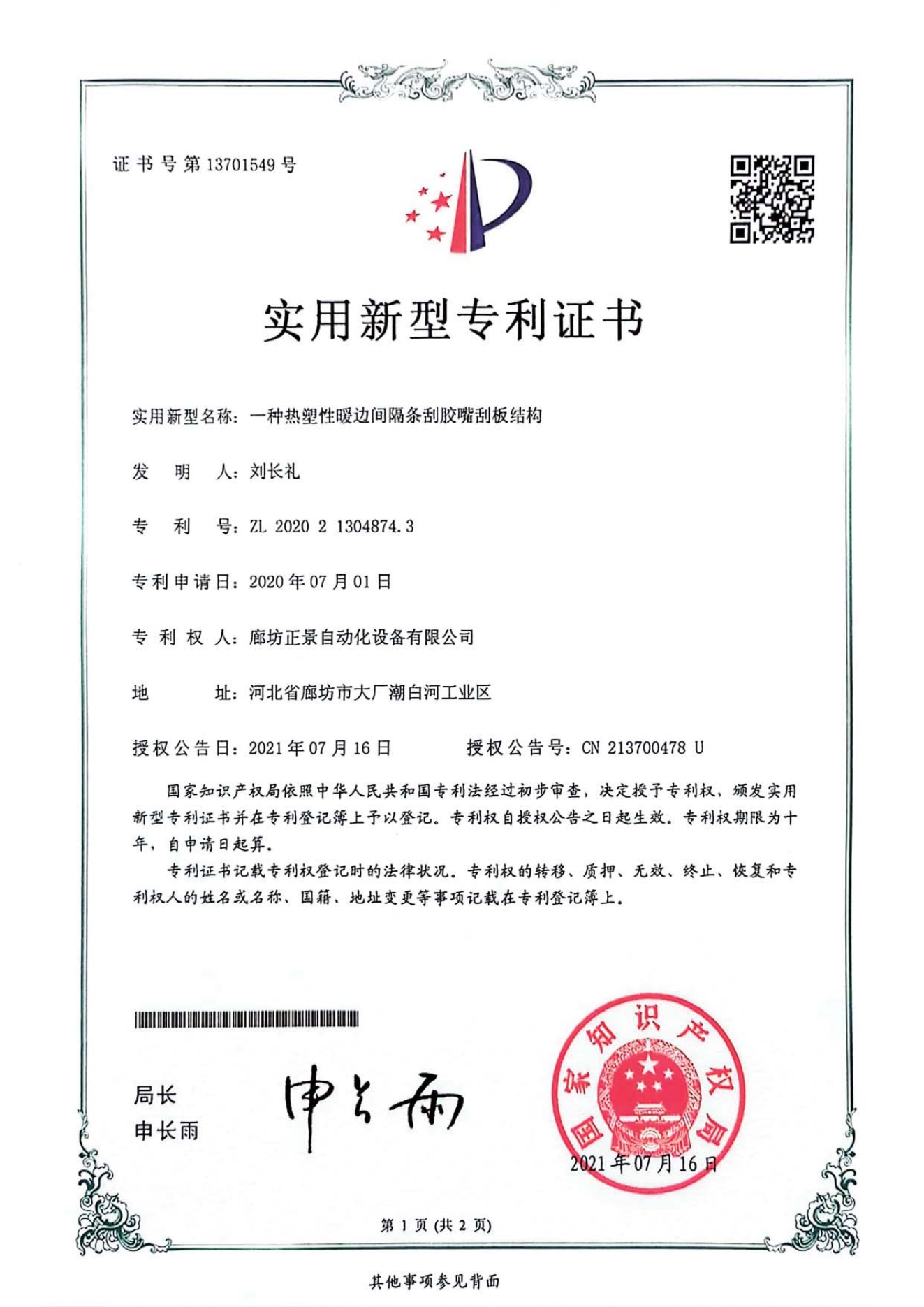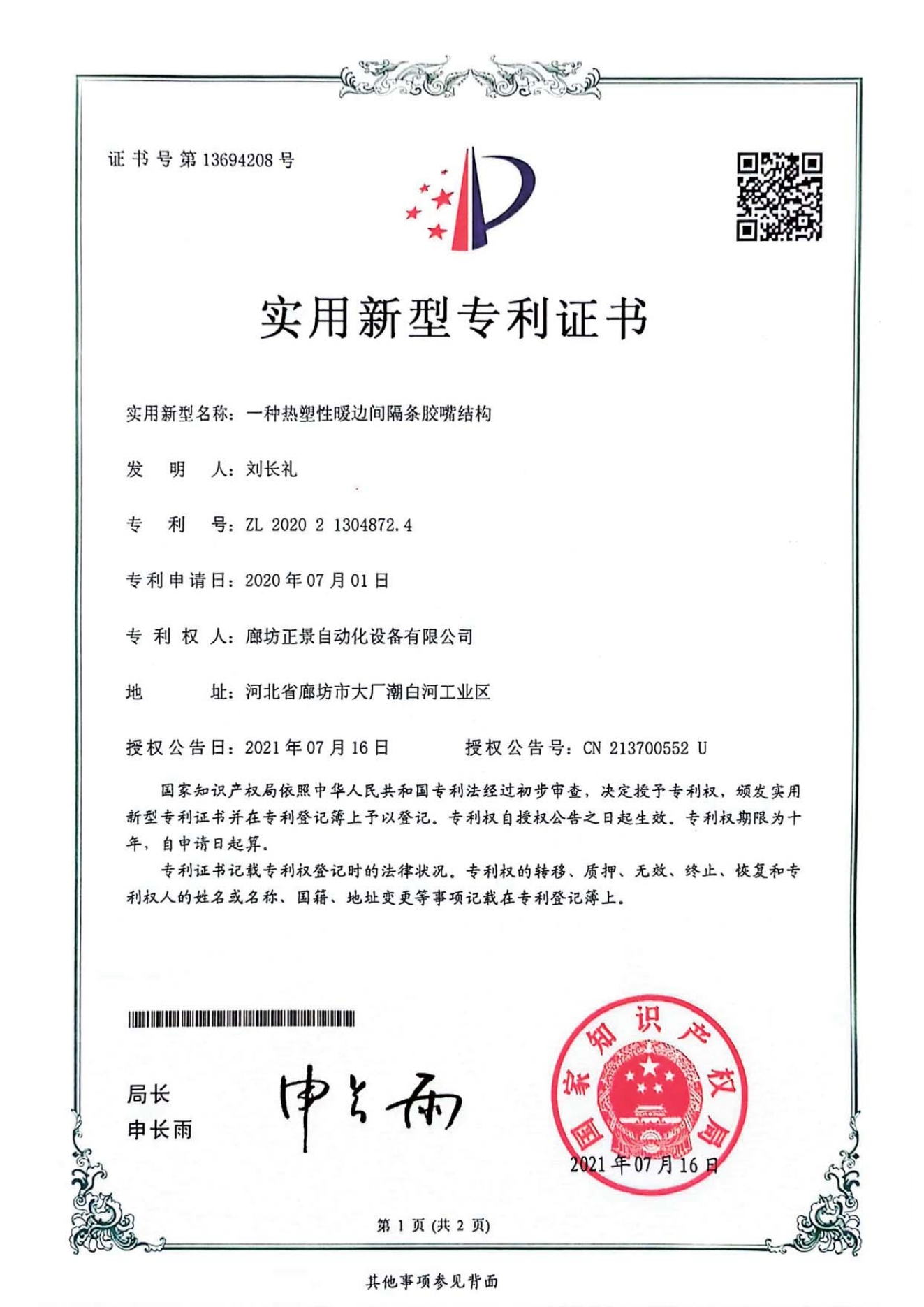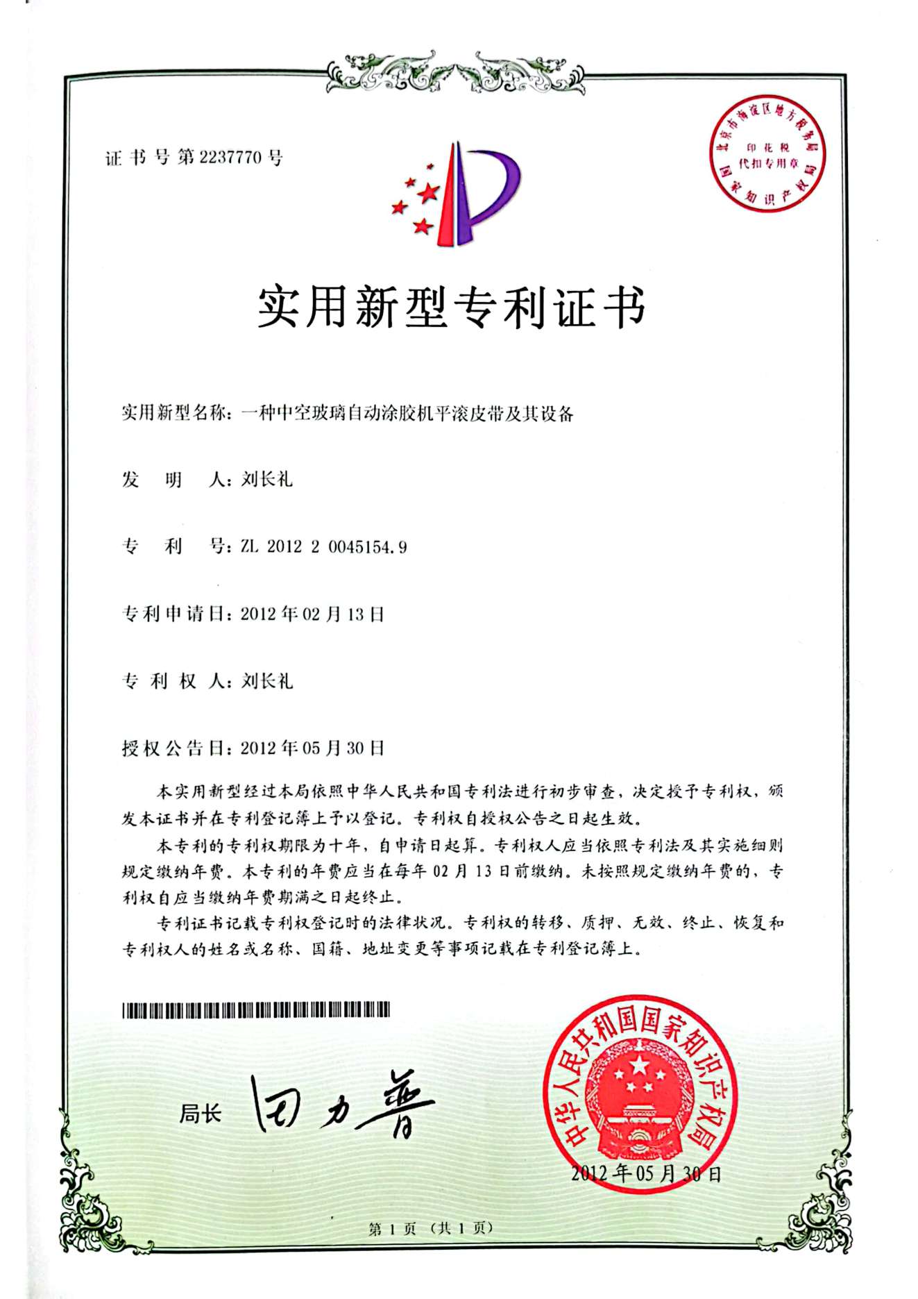 公司致力于玻璃機械設備相關產品的研究與生產已30余年,并擁有各種專利發明共記40余項。公司的核心產品有:全自動打膠機,全自動充氣中空玻璃生產線,全自動TPE中空玻璃生產線,超彈間隔條中空玻璃生產線,TPE密封膠,超彈間隔條,全自動曲面玻璃清洗機,全自動玻璃切割機,全自動單面/雙面玻璃覆膜機,智能玻璃倉儲系統等。